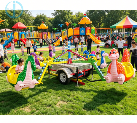 8 Seats Dragon Ride with Trailer is a premium, fully mobile amusement solution engineered for fairs, carnivals, festivals, and pop-up events worldwide. Built on a heavy-duty galvanized steel trailer base for road safety and durability, this ride features 8 vibrant, kid-friendly dragon-shaped fiberglass seats that gently bounce and rotate in a controlled, family-friendly motion. Its eye-catching design with bright LED lights and whimsical dragon characters instantly draws crowds, making it a proven foot traffic magnet and high-return investment for mobile operators.